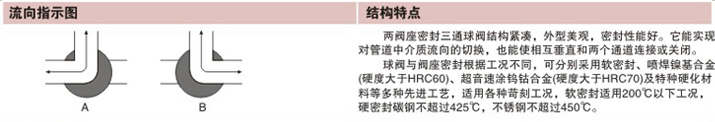 L型三通球閥隻能連接(jiē)相互正交的(de)兩條管道,不能同時保持第三條管道的(de)相互連通,隻起分配作用。三通球(qiú)閥一般采用兩閥座結構,亦可根據用戶要(yào)求采用四閥座結構。四閥(fá)座密封三通球閥具有造型美觀、結構(gòu)緊湊合理