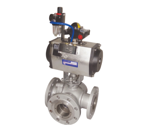 氣動(dòng)三通球閥可分為L形氣動三通球閥和T形氣動三通球閥,L形(Q44F)三通球閥用於介質流向的切換,能使相互垂直的兩個通道(dào)連接;T形(Q45F)三通(tōng)球閥用於介質分流、合流及流向切換。T形三通(tōng)可以使三個(gè)通道相互連通或使其中的兩個通道連通。三通球閥一般采用(yòng)兩閥座結構,亦可根據用戶(hù)要求采(cǎi)用四閥座(zuò)結(jié)構。